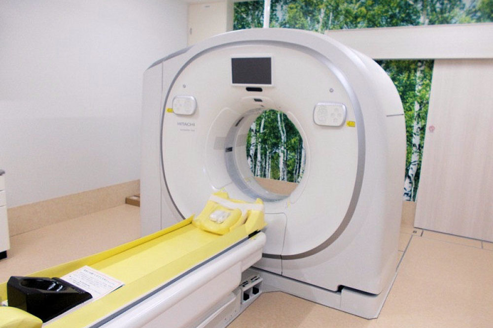 CTは日立製作所の最高位機種 64列128スライスCT SCENARIA View(シナリア ビュー)を導入しました。SCENARIA Viewは次世代の逐次近似(ちくじきんじ)処理である「IPV」は高い被ばく低減率においても、画像の質感を維持し、低線量時でも視認性の優れた画像が可能となりました。また、広々とした開口径で被検者へのアクセス性が向上したことで、寝台が最大20cm移動するため被検者を動かさず心臓領域だけでなく肩などの整形領域の位置決めの際の利便性が向上しました。