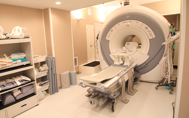 MRIはCTと違い、放射線被曝することなく、磁石と電波を利用しCTでは見えにくい初期の脳梗塞や微小な血管病変がはっきり見えます。特に整形外科領域ではCTを凌駕する画像情報を得られます。当院ではこの度、MRIを最新機種(GE社製 Optima MR360 1.5テスラ)に更新し、旧型機と比べ高精細な画像を得られることが可能になると共に、撮影テーブル(ベット)が脱着可能となったため、患者様への負担軽減にも配慮がなされています。