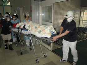 当院の所在地である、延岡市は海・山・川と大変自然豊かなところです。自然が豊かであるという事は、自然災害が起こる事も避けられないという事になります。そこで、当院では2005年より定期的な火災訓練だけではなく、大規模災害(地震・津波・風水害等)を想定し、訓練や計画・マニュアルの策定を行っております。 又、非常用発電設備とは別に、持ち運び可能な小型発電機等の資機材や食料等の備蓄をおこなっております。
