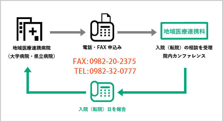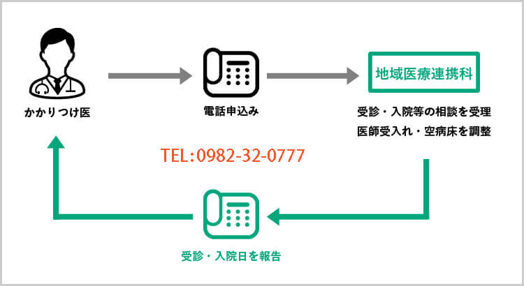 主治医の承諾後、当院の地域医療連携室へお電話でご連絡下さい。