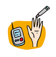 糖尿病と診断するには、血糖値とHbA1c(ヘモグロビン エー ワン シー)をみます。血糖値は、血液中のブドウ糖濃度で、お腹が空いているときは低めに、何か食べた後は高くなります。