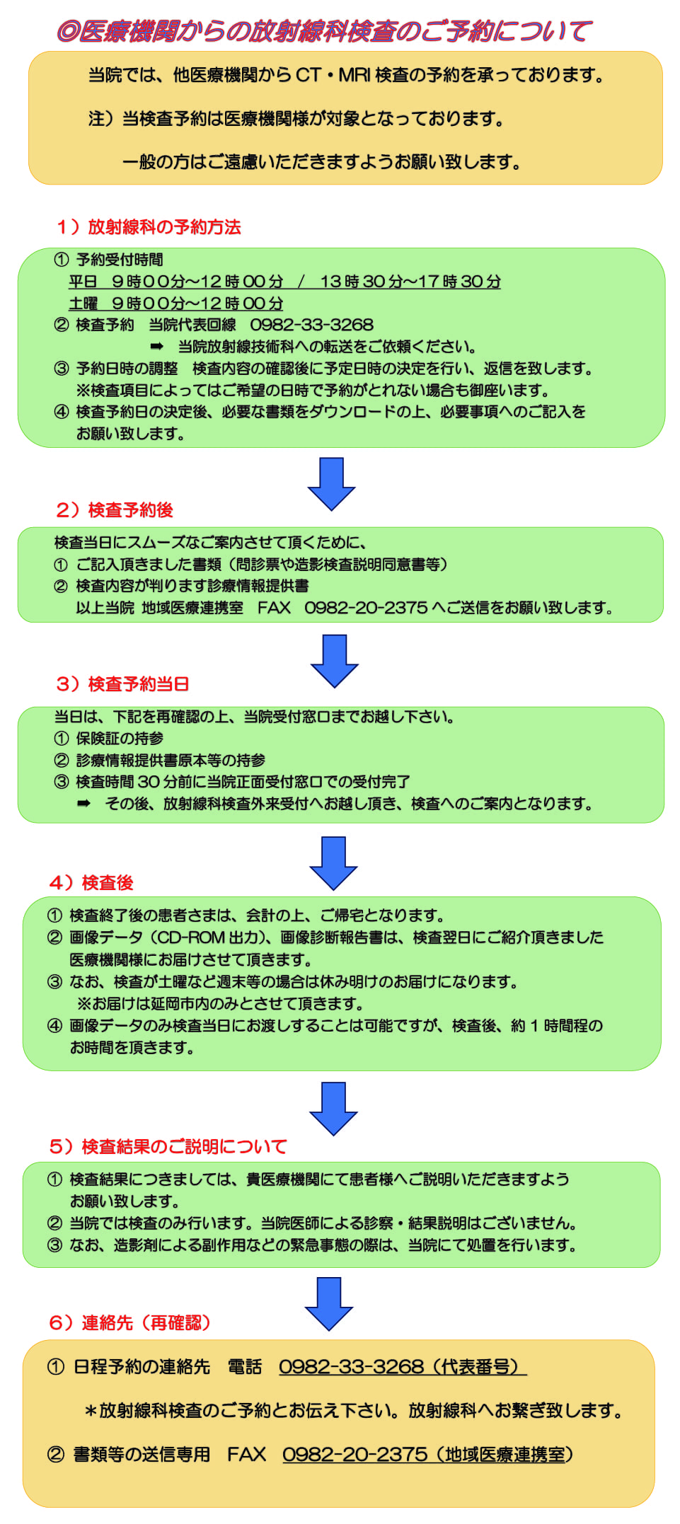 その後当院にて予約日時を設定させていただき、後日あらためて地域医療連携室からご連絡いたします。