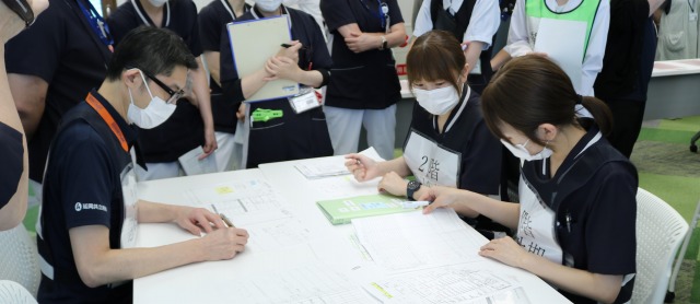 架空の患者さんを設定し、必要な治療内容にあわせて紙カルテに記入したり、各部署と連携したりと、実際の流れを体験しました!