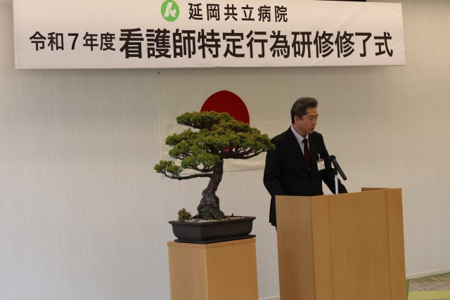 当院理事長 赤須郁太郎より「医療人材の乏しい延岡市西臼杵地域の中で、特定看護師としてのこれからのご活躍を心よりお祈り申し上げます。」とのエールが送られました。