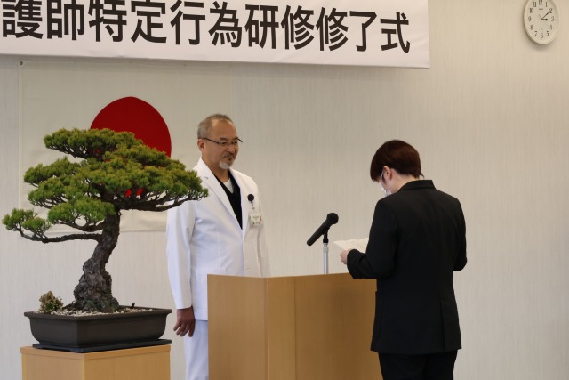 令和7年度看護師特定行為研修の修了式が令和8年3月19日に行われ、受講生2名に修了証が授与されました。