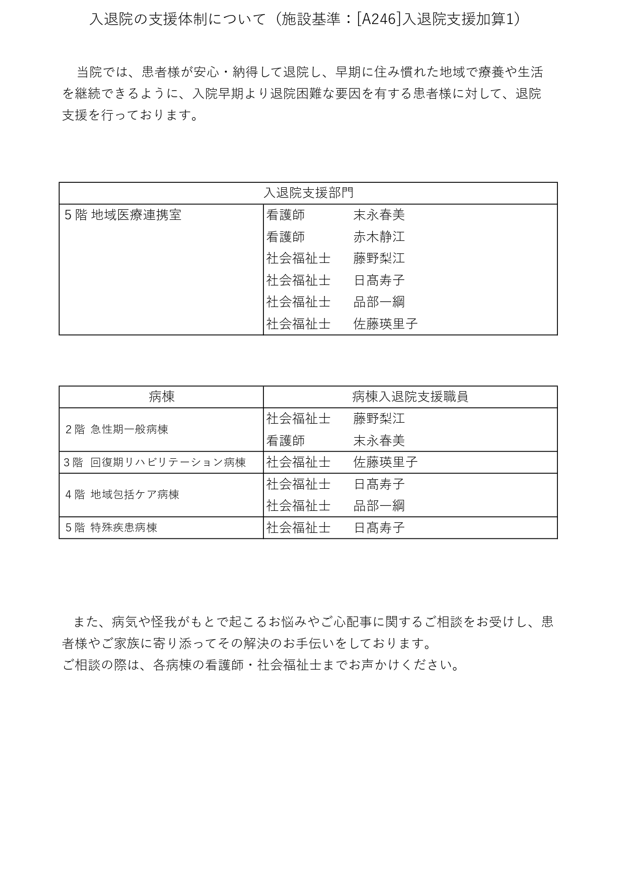 入退院支援体制