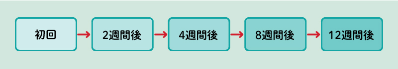 健康保険等を使った禁煙治療(飲み薬や貼り薬を用いる治療)では、12週間で5回の診察を受けます。はじめに喫煙状況などから健康保険等で治療が受けられるかをチェックします。禁煙を成功させるためのアドバイスやサポートを交え、患者様と一緒に禁煙治療を行ってまいります。
