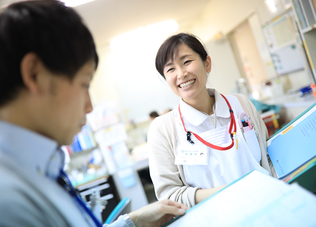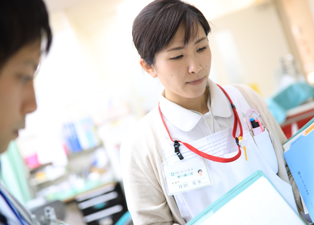 • 患者さんからの「ありがとう」や、名前を覚えてもらえる事です。忙しさにつられて、つい笑顔を忘れそうになることがあっても、患者さんから元気付けてもらっている気がします。また、先輩方に教えてもらったことやアドバイスが少しずつ身についてきたかなと感じる瞬間に喜びを感じます。