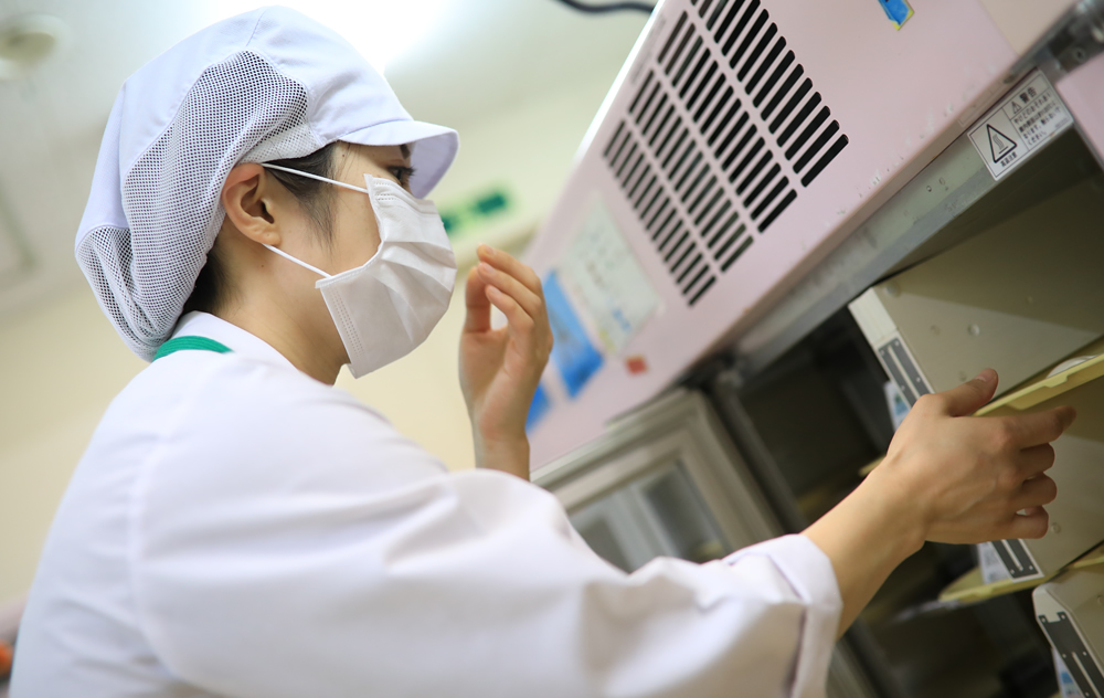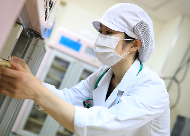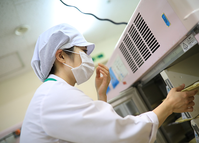 - 給食管理は業者委託ではなく病院直営で作っていますので、常食・エネルギーコントロール食・減塩食等様々な食事の献立の作成や、栄養事務と共に発注・出納・衛生管理等もしています。