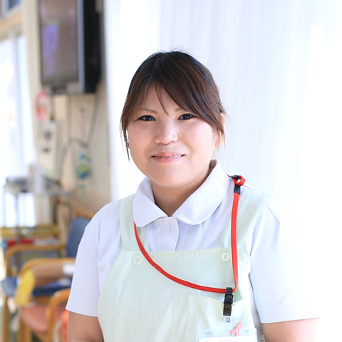 - 今後、世の中は高齢者はどんどん増えていくと言われています。そんな中、病院とは違った視点から老年期看護について、学んでいきたいと思い、当施設へと就職しました。