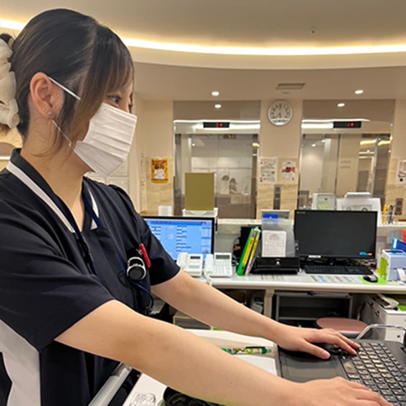 • 新人として、まずは確実な知識や技術を身につけることを目標にしています。そのうえで、患者さん一人ひとりの思いに寄り添い、安心して治療や療養生活を送っていただけるような看護師になりたいです。