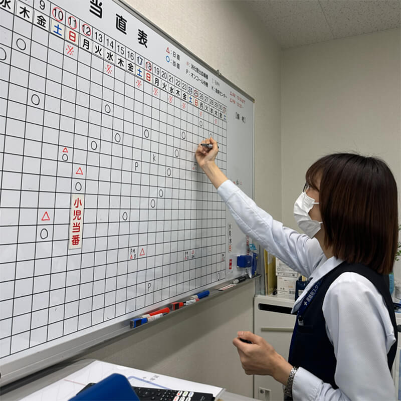 - 日々、先生方とコミュニケーションをとりながら業務を進める中で、「ありがとう」と声をかけていただける瞬間にやりがいを感じます。自分のサポートが院内の円滑な運営につながっていることを実感できることが喜びです。