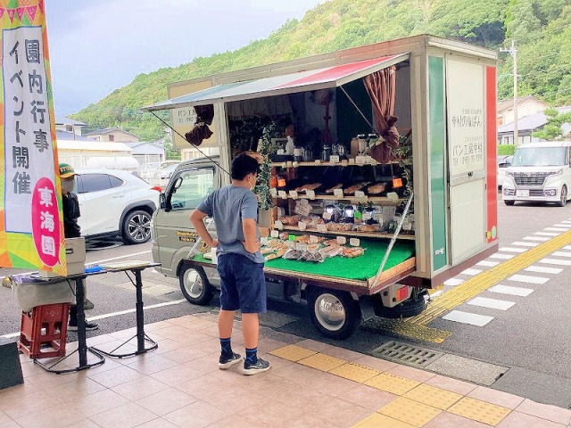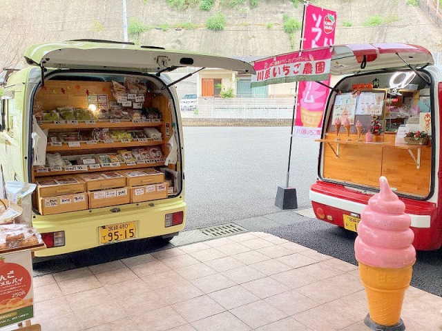 パン工房幸村さんのパン販売 風の菓子虎彦さん・川原いちご農園さんの、菓子やアイスクリーム販売