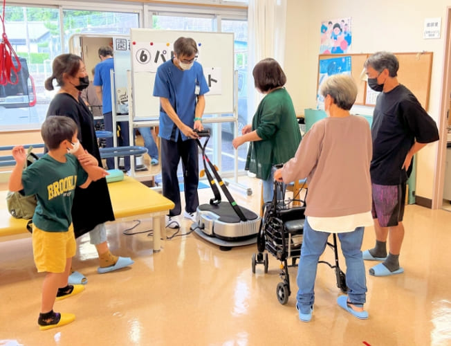 - ストレッチや関節の運動、筋力強化訓練等を行い、痛みの緩和や心身機能の維持・向上を図ります。