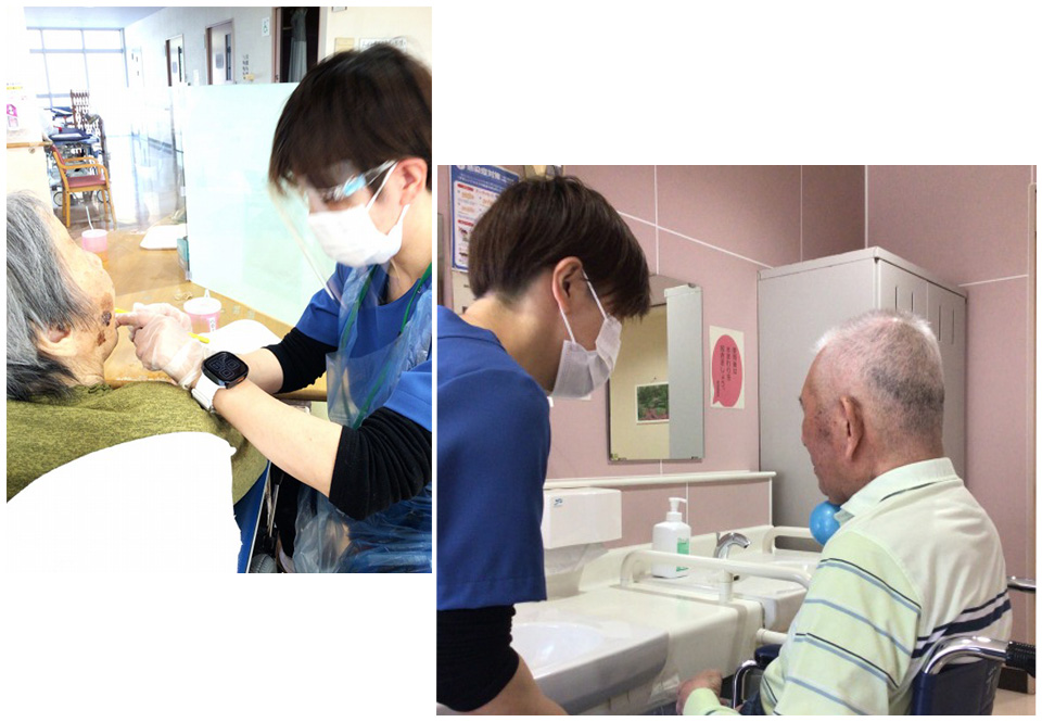 - 口腔内の衛生状態(歯の動揺の有無、歯ぐきの状態、舌苔の有無・状態、口唇や頬粘膜の乾燥状態など)を定期的に確認し、磨き残しの除去やブラッシングの指導等を行います。